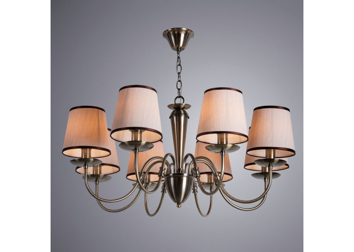 Подвесная люстра Fiona A3227LM-8AB от итальянской фабрики Artelamp отлично справится с освещением гостиных комнат с дизайном в стиле классический. Данная модель способна осветить помещение площадью 16 кв.м. Светильник изготовлен из материала: ткань, и крепится на крюк. Основной цвет изделия: бежевый; цвет арматуры: бронза. Чтобы выбрать и купить идеальную люстру с доставкой, Люмина-Лайт предлагает Вам сравнить несколько понравившихся светильников или воспользоваться помощью наших опытных менеджеров.